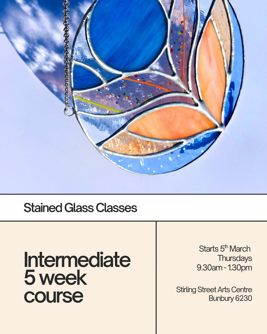Join me for hands-on fused glass workshops at the Art Hive and stained glass classes at the Stirling Street Arts Centre. Whether you’re a complete beginner or looking to refine your technique, my classes are designed to be welcoming, skill-building and creatively energising. You’ll learn traditional stained glass methods and contemporary kiln-fusing processes in a supportive, small-group environment.